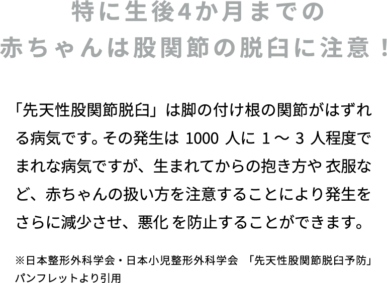 1歳半まで可能です。そこから先はお子様の身長と体の大きさ、股関節のやわらかさ等によります。