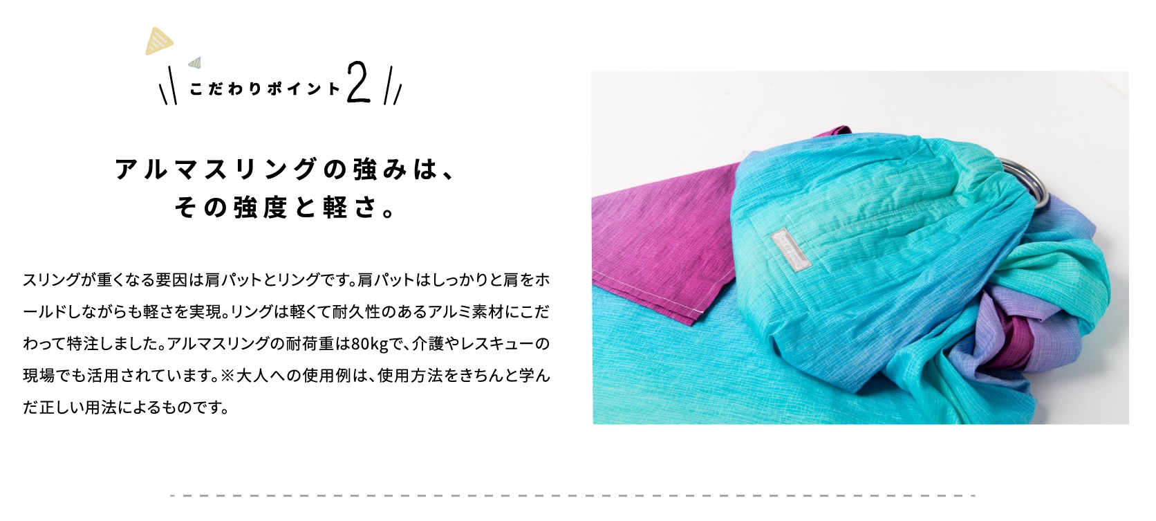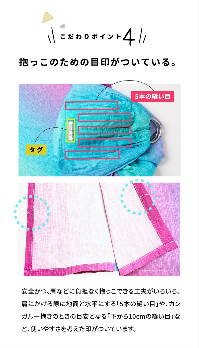 新生児から使用可能ですが、はじめはお米または3~5kg程度の荷物を入れたリュックサックを使って練習するようおすすめしています。